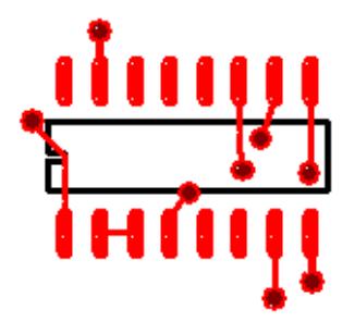 SailWind Router 根据选项对话框 放置 选项卡中的移动扇出和重新布线设置来操作已放置元件管脚上连接的导线。当您启用移动扇出设置时,SailWind Router 会将识别为扇出的导线和过孔与元件一起放置。